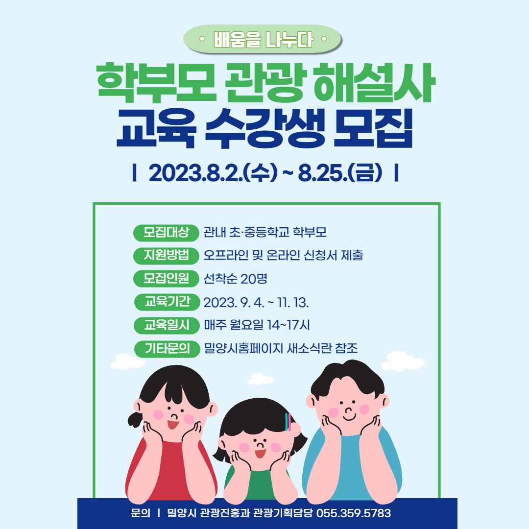 (홍보) 배움을 나누다「학부모 관광해설사 양성교육」 수강생 모집